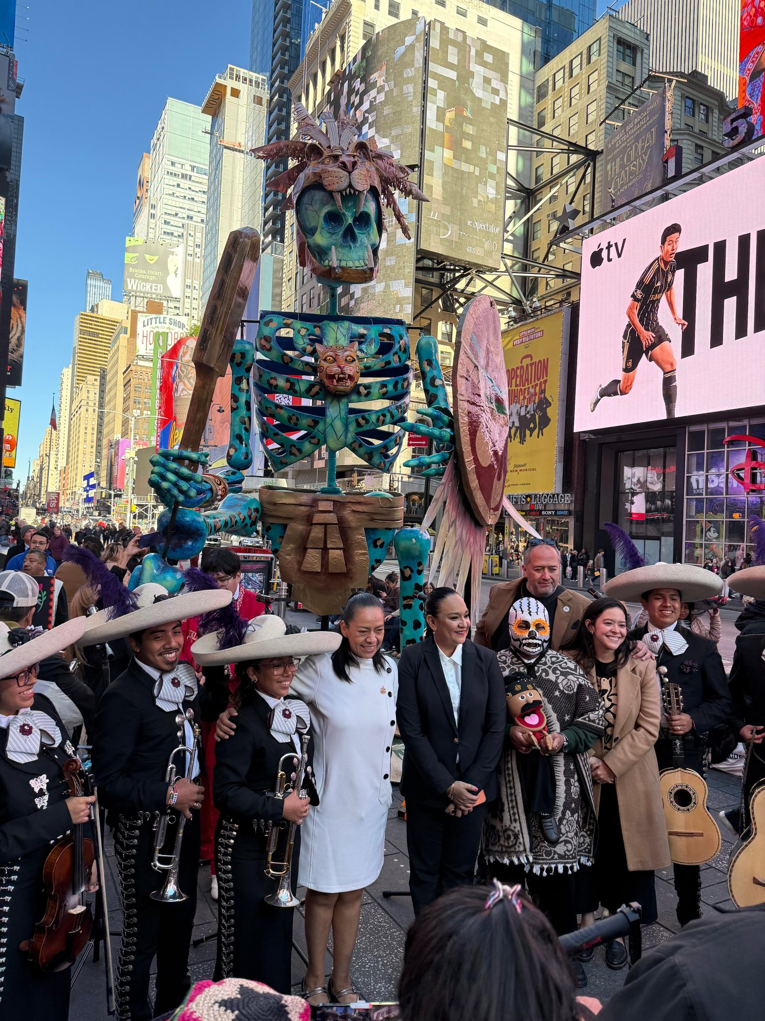 En un hecho histórico, la presidenta de Atlixco, Ariadna Ayala, encabezó la inauguración de las Catrinas Monumentales de Atlixco, El Guerrero Águila y El Guerrero Jaguar, en Times Square, llevando el arte, la cultura y la identidad del pueblo Atlixquenses a nuestros hermanos migrantes.